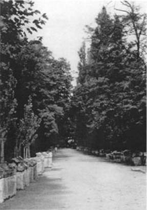 Wie ermee begint het slagveld van Alischanz met behulp van Wolframs exacte aanwijzingen te reconstrueren kan het beste met dit eenduidig bepaald grafveld aanvangen. De sarcofagen zijn echter niet meer op de plek te vinden waar ze twee duizend jaar geleden door de Romeinen en later door christenen neergelegd zijn, en waar ze in de 9de eeuw door Willehalm, vier honderd jaar later door Wolfram en duizend jaar na de veldslag door Mylius nog zijn gezien. Men heeft de rest van de sarcofagen die niet vernietigd of weggehaald zijn op de “les Alyscamps” genoemde laan aan de rand van de stad bij elkaar gebracht (afb. 9). De mooiste stukken bevinden zich in het Louvre museum in Parijs en in het Museé d’Art Chrétien in Arles. Een enkele sarcofaag ligt in Saint-Guilhelm-le-Désert, op die plek dus waar Willehalm, na zich teruggetrokken te hebben uit het openbare leven, in stilte geleefd heeft. Nog aan het begin van de 19de eeuw heeft de reiziger Mylius dit grafveld als volgt beschreven: