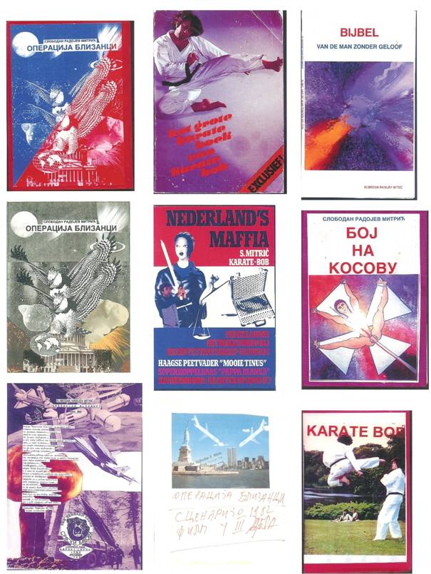 The above shows a quilt patch of literary works and films by Slobodan Mitric. In the left pillar are title pages of the Serbian version of Operation Twins. On the bottom of the middle pillar, there is a copy of the title page from the original manuscript dating from 1982. The author has several active weblogs, including the Serbian Internet News at http://internetnovineserbske.spaces.live.com