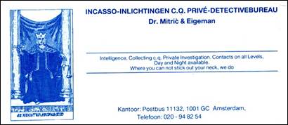 A plumb man, Victor Lebesque, the jurist of de Volkskrant, enters the office. “Oh! The private detectives have already arrived.”