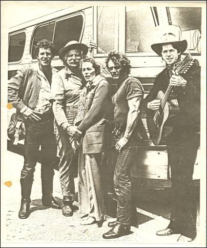 The Dutch-Canadian Troubadour Robert Jan Kelder with veteran actor Will Geer and Co. at Warner Bros. Studio in Hollywood before the start of their tour “Americana 1973” from L.A. to New York with selected works of Robert Frost, Mark Twain, Walt Whitman and Woody Guthrie.